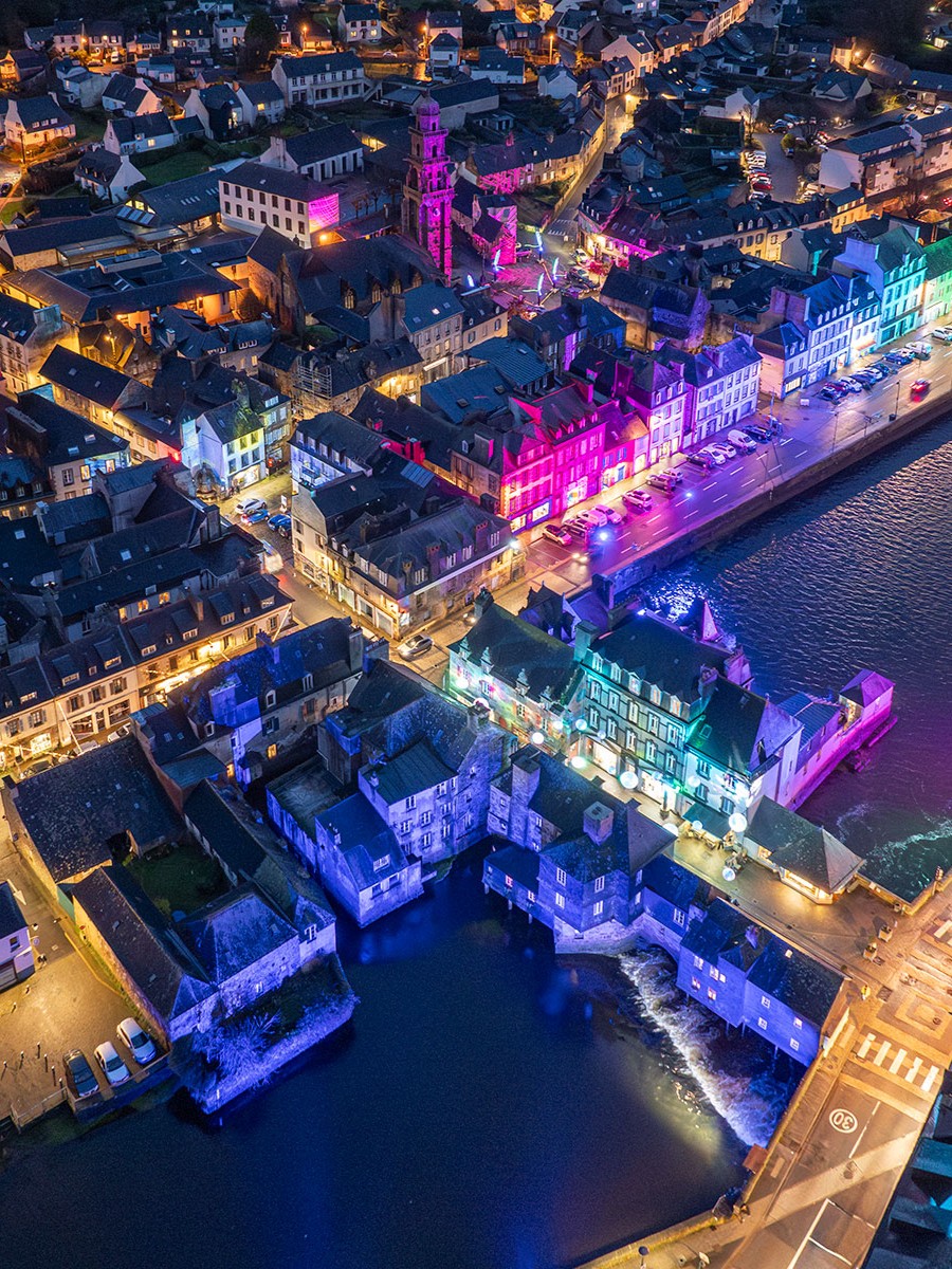 Après le vif succès des dernières éditions, la Ville de Landerneau renouvelle sa proposition avec neuf mises en lumière originales autour des lieux emblématiques de la ville : de l’église Saint-Houardon à la place Saint-Thomas, en passant par les quais de l’Elorn, le pont habité ou encore les rues piétonnes.